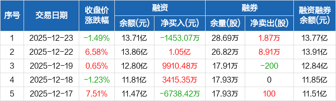 永鼎股份:融资净偿还1453.07万元,融资余额13.71亿元(12-23)