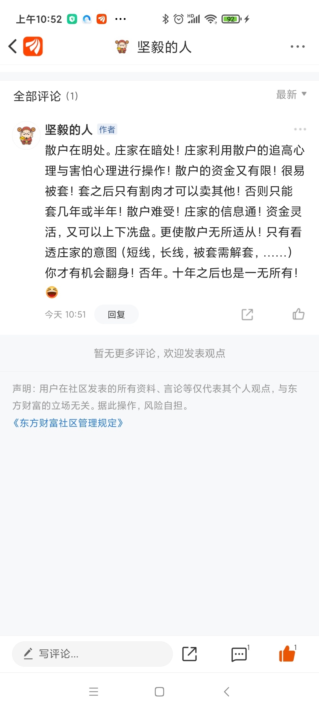 温馨提示: 1.根据《证券法》规定,禁止编造、传播虚假信息或者误导性信息,扰乱证券市场;2.用户在本社区发表的所有资料、言论等仅代表个人观点,与本网站立场无关,不对您构成任何投资建议。用户应基于自己的独立判断,自行决定证券投资并承担相应风险。《东方财富社区管理规定》