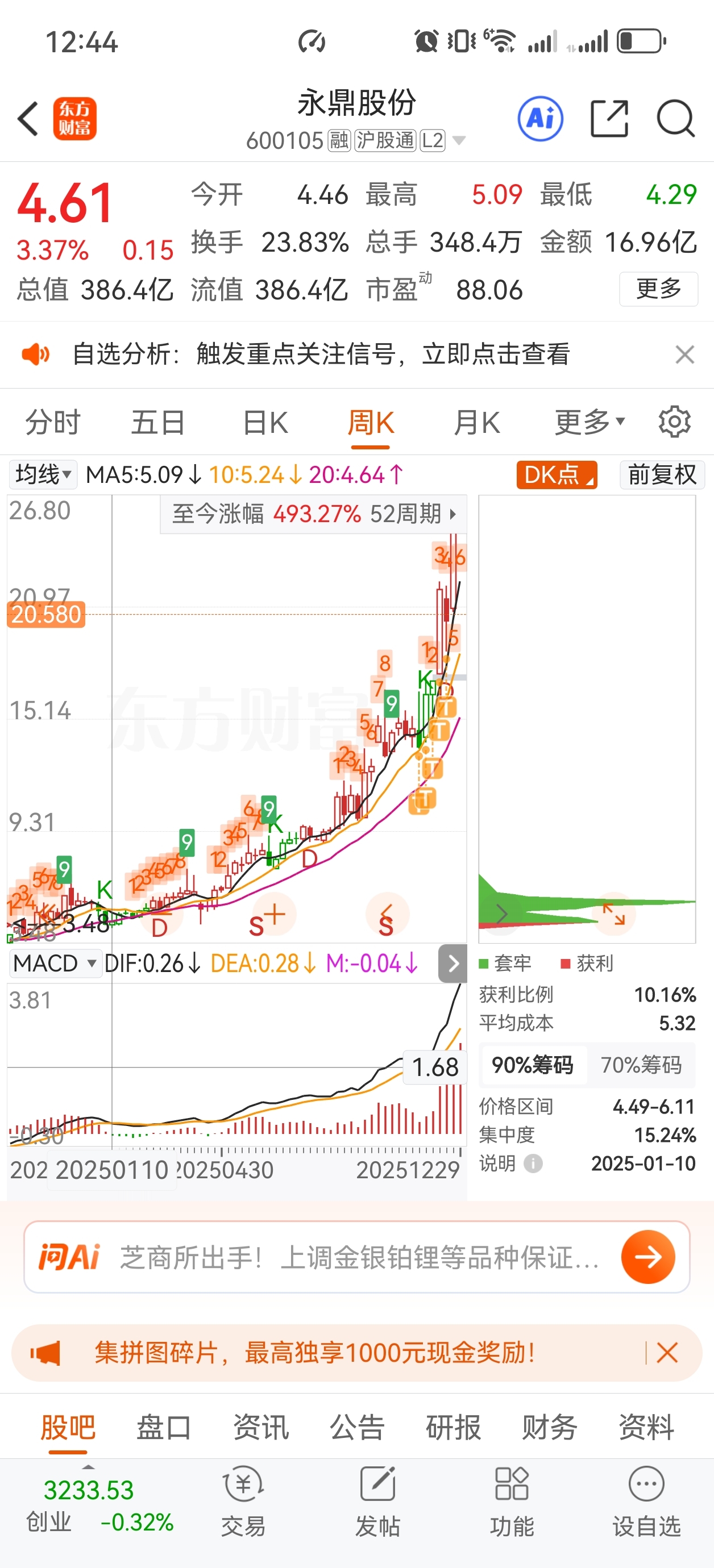 到春节放假,能拉十倍就好了,不怕回调,目标46。