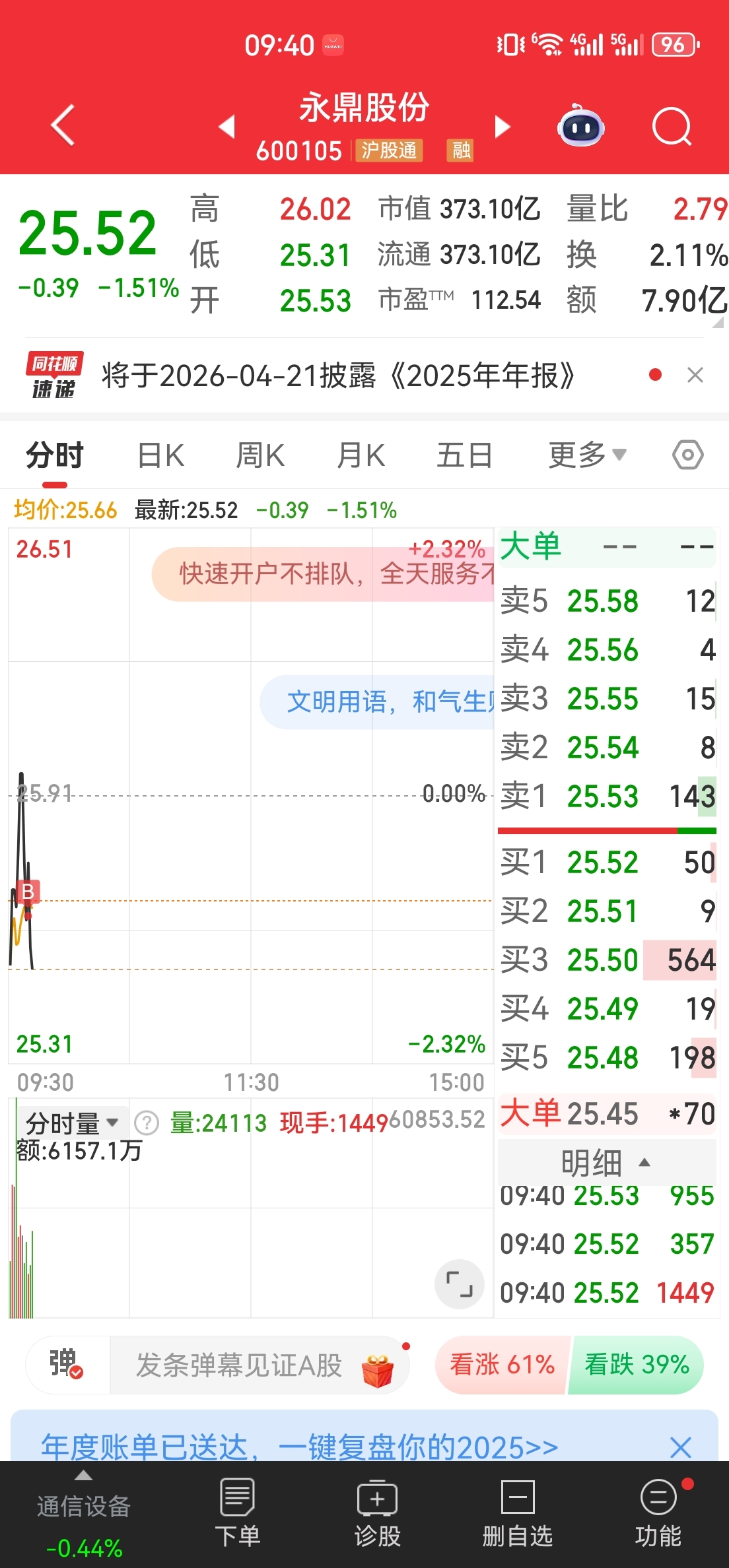 $永鼎股份(SH600105)$ 一万到一百万第52天,神剑0轴附近走了,买了永鼎