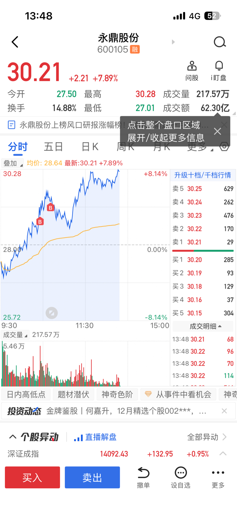 $永鼎股份(SH600105)$ 感觉涨停难度很大。考虑要不要T出去。还是胆小啊。