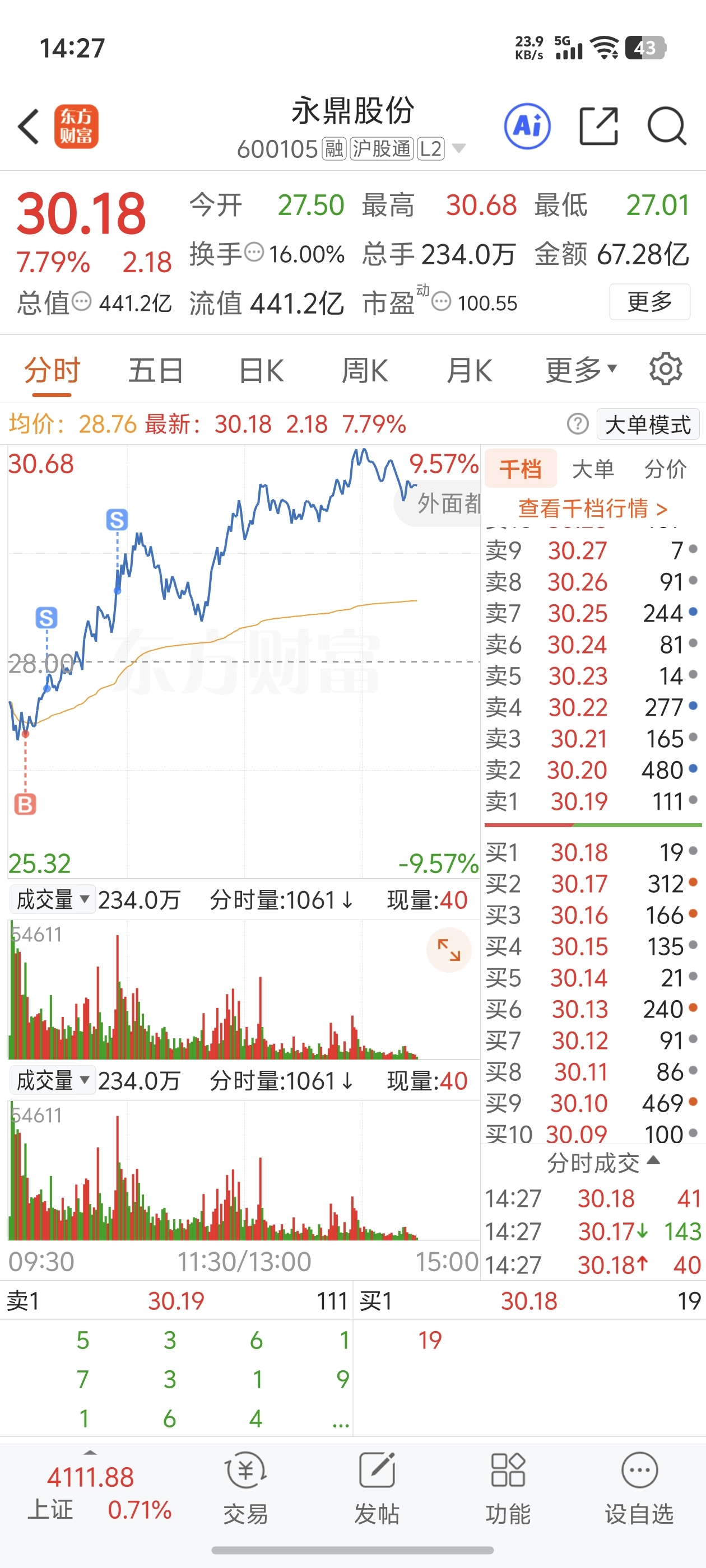 $永鼎股份(SH600105)$ 已经不知道这是多少天高抛低吸了。底仓没有动过。已经盈利200多个点了。加油