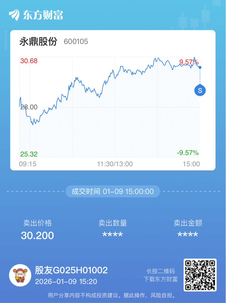 不管怎么样,感谢永鼎,早盘买入,尾盘卖出,留下底舱,控制风险