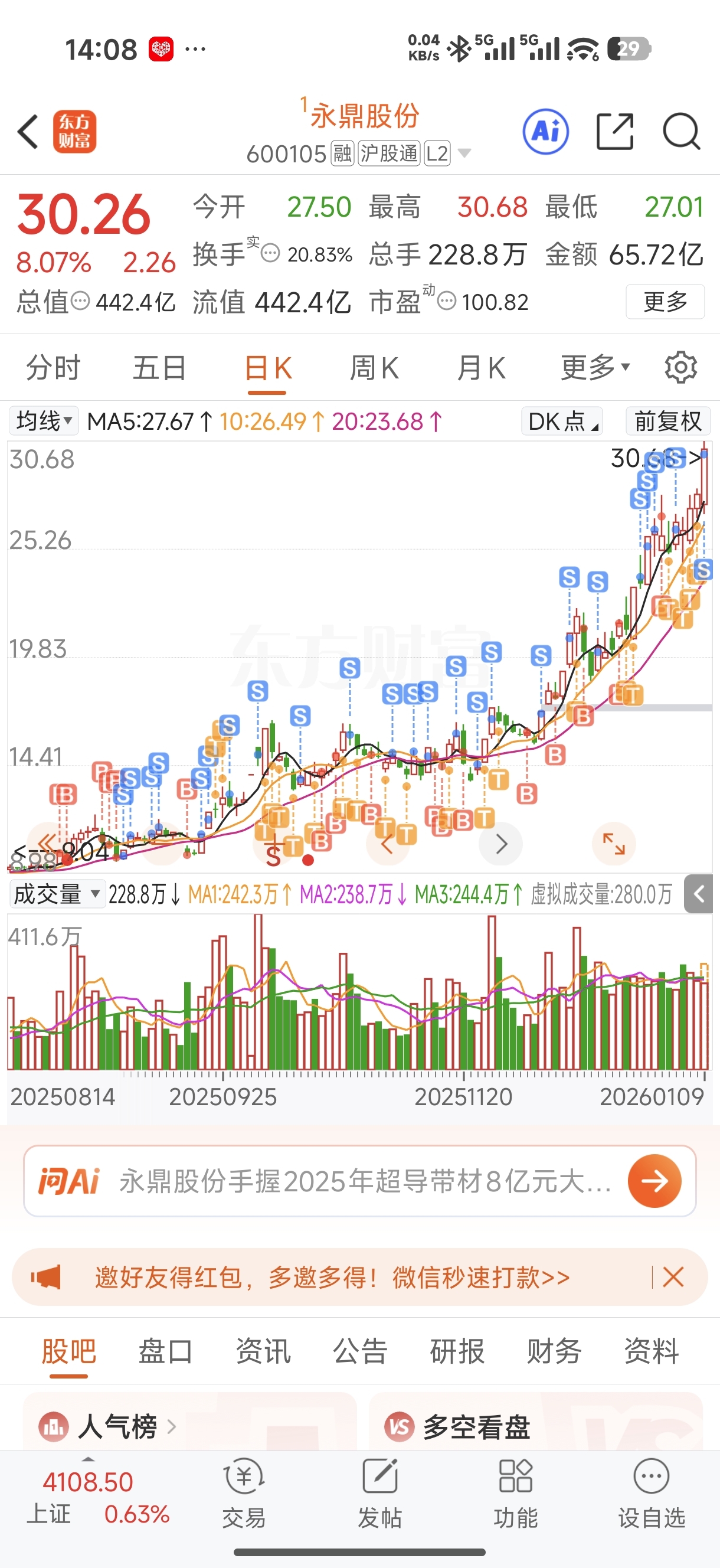 今天里程碑式清仓!春节后再见了!一路走来感谢永鼎以及所有参与的朋友们。