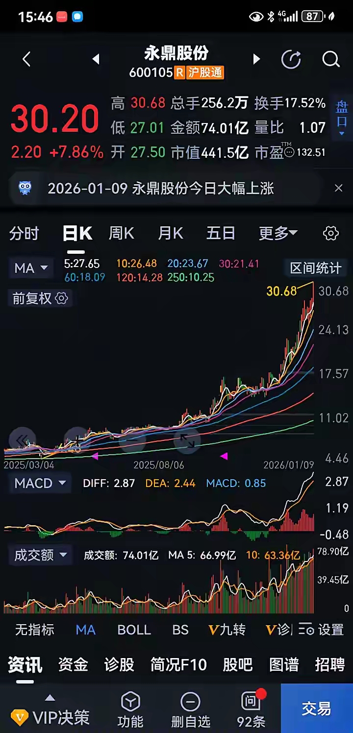 $永鼎股份(SH600105)$ 哇塞!请看永鼎的日、周、K线走势图,犹如歼—15战斗机,从辽宁舰上跑道滑跃起飞划出的轨迹,太漂亮啦!