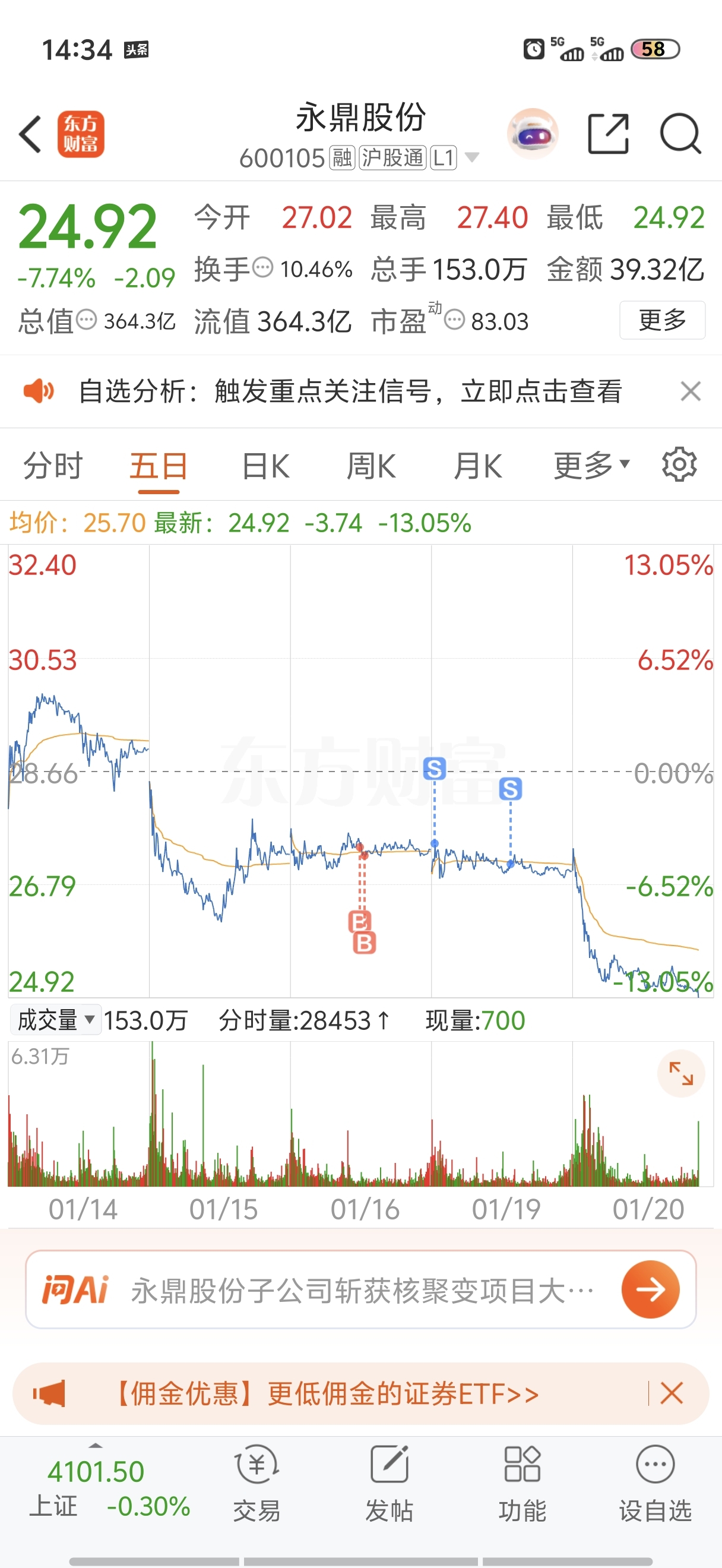 $永鼎股份(SH600105)$ 幸好昨天跑了,这货只剩下漫长的下跌期了