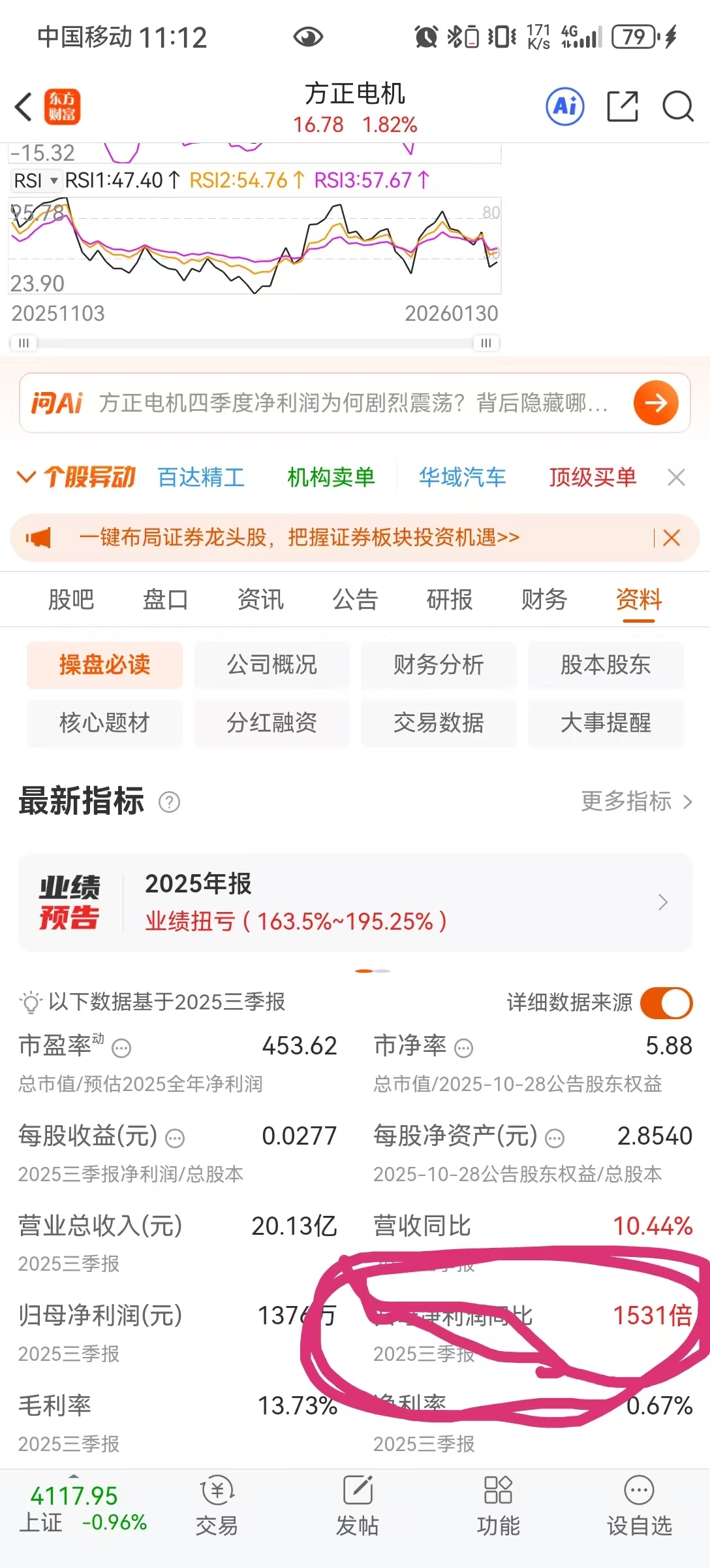 $方正电机(SZ002196)$ 方正电机增长率1531倍相当于增长率153100%百分比,你说能不能拿两三年翻一翻