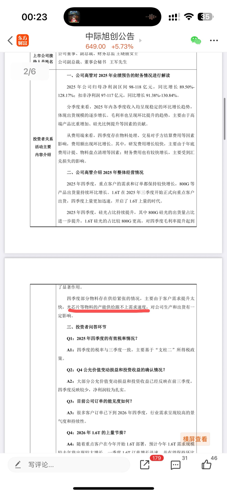 光芯片紧张,26年上半年供不应求,其次是涨价,随着1.6T光模块放量,中际旭创自