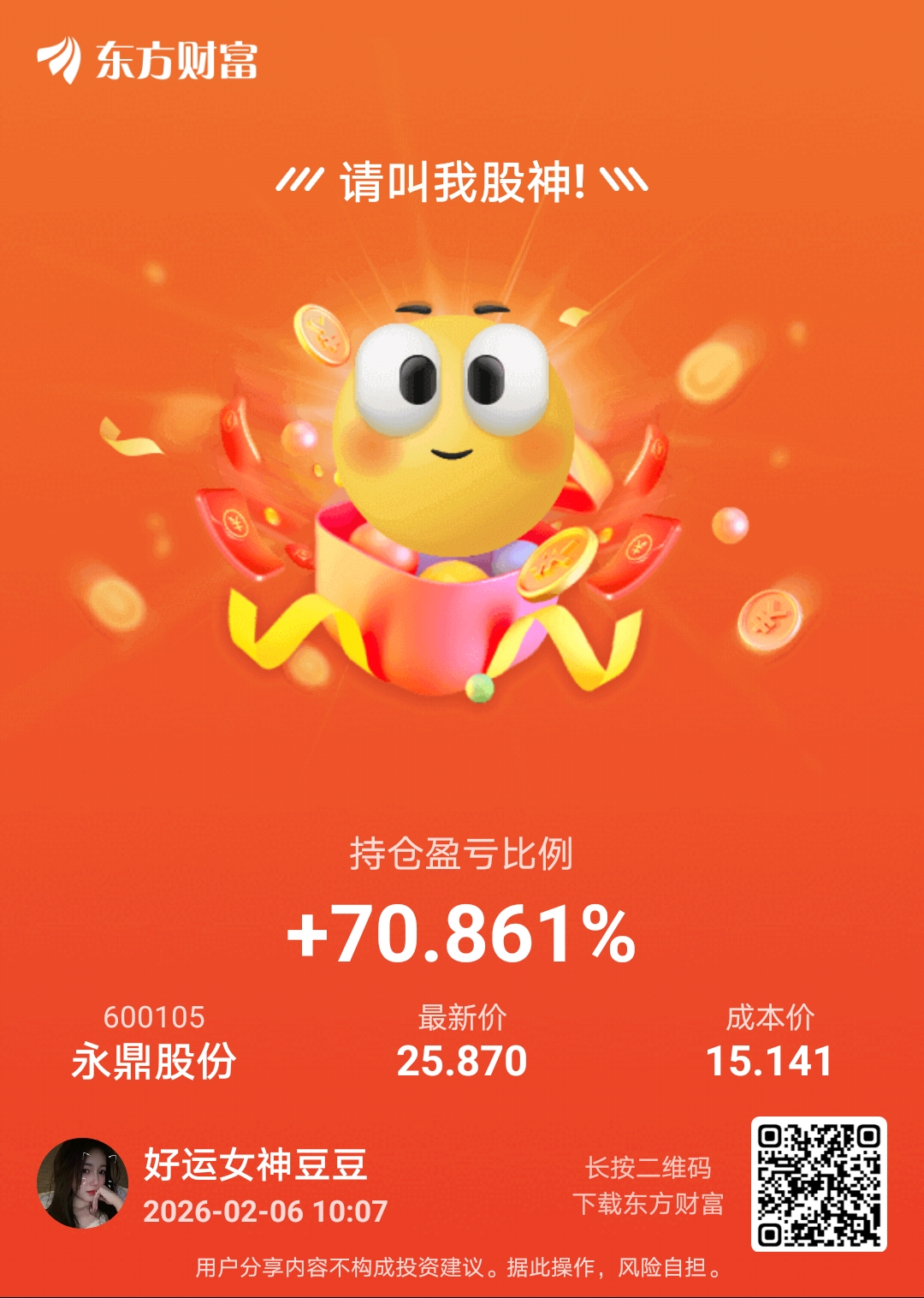温馨提示: 1.根据《证券法》规定,禁止编造、传播虚假信息或者误导性信息,扰乱证券市场;2.用户在本社区发表的所有资料、言论等仅代表个人观点,与本网站立场无关,不对您构成任何投资建议。用户应基于自己的独立判断,自行决定证券投资并承担相应风险。《东方财富社区管理规定》