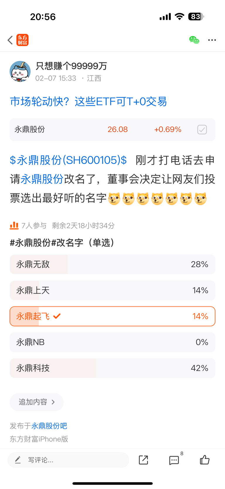 $永鼎股份(SH600105)$ 家人们赶紧投票,目前改名永鼎科技的呼声最高