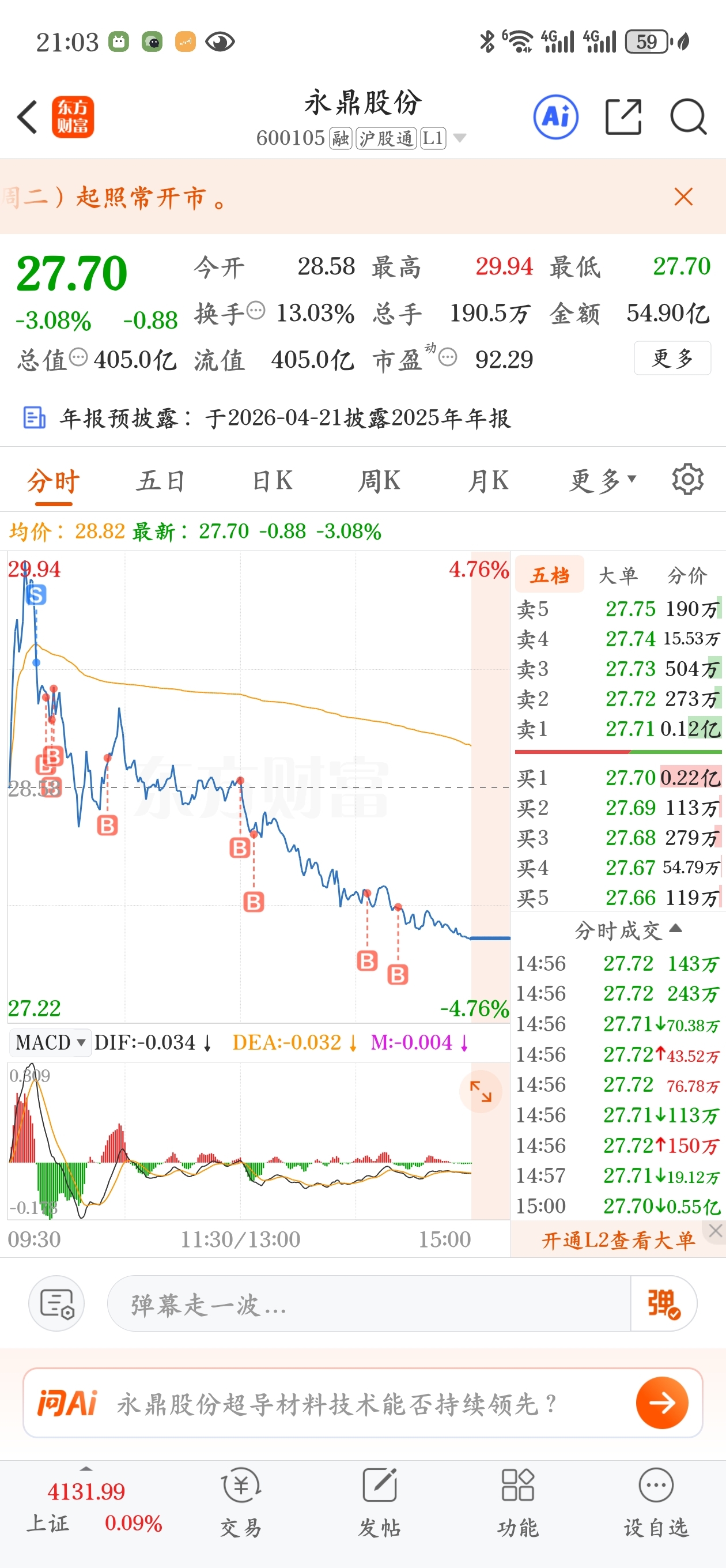 $永鼎股份(SH600105)$ 全部出完,本来赚钱的搞到亏钱,抄到是八层了,根本买不完