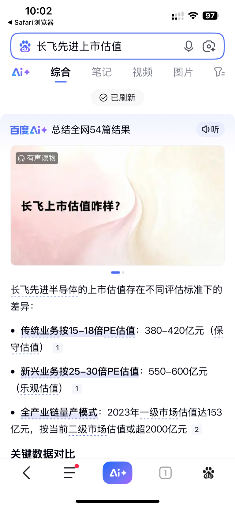 $重庆路桥(SH600106)$ 百度AI:长飞先进上市估值超2000亿?