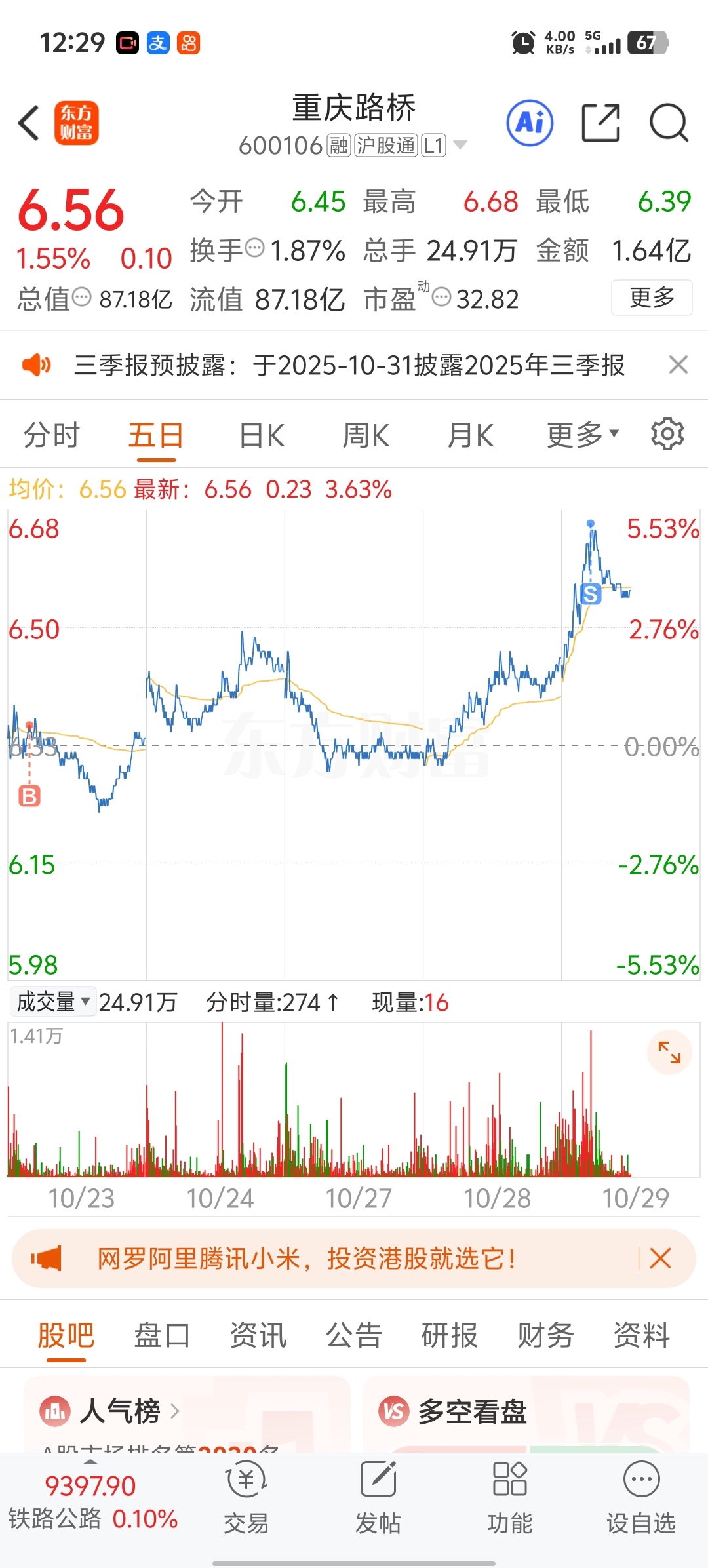 $重庆路桥(SH600106)$ 明天震荡再接回来