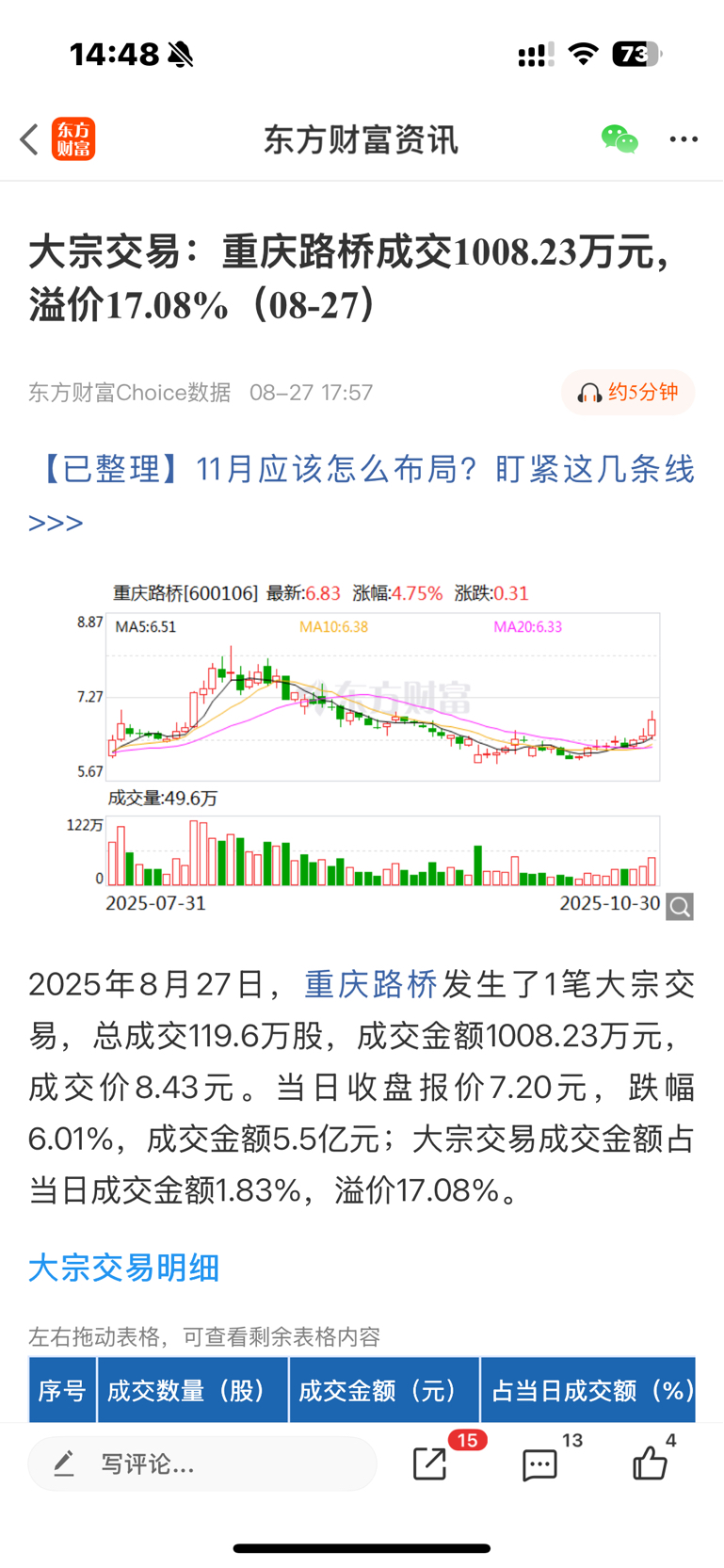 $重庆路桥(SH600106)$ 八月份一直有大宗交易,看下价格,六个月不能卖出,你还要卖吗?
