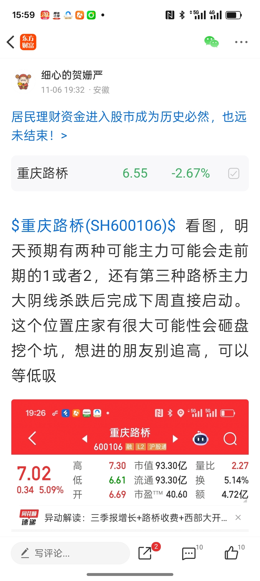 $重庆路桥(SH600106)$ 发个帖,有一群,我明确说了第三种挖坑的概率大。而且说了不要着急追,套了就怨天尤人,让你们买了吗