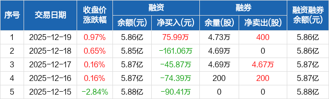重庆路桥:融资净买入75.99万元,融资余额5.86亿元(12-19)