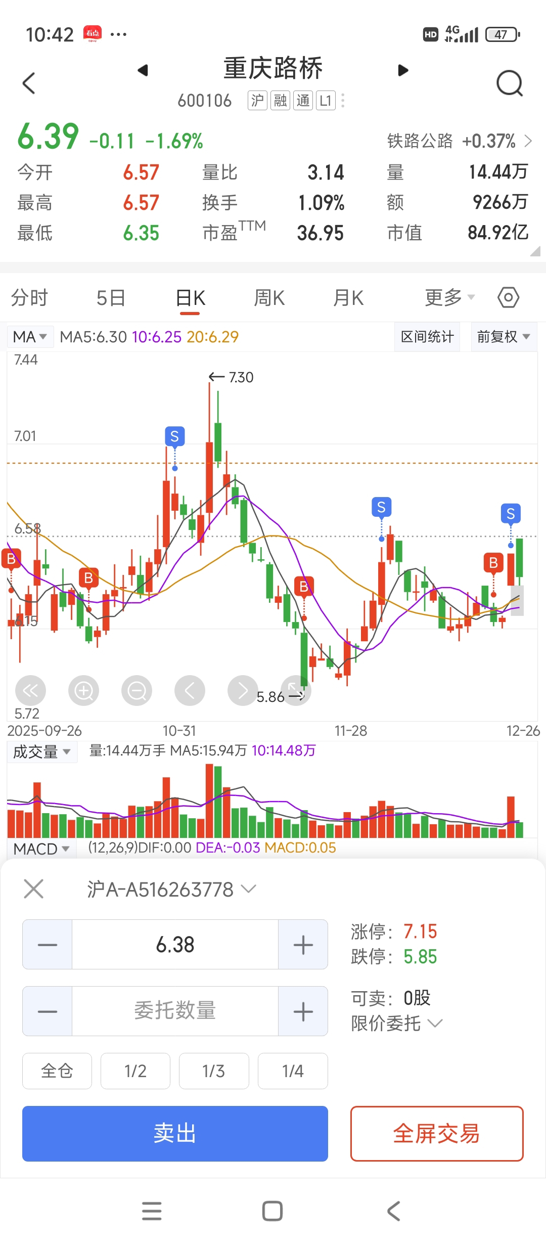 $重庆路桥(SH600106)$ 有本事继续跌,我再买回去