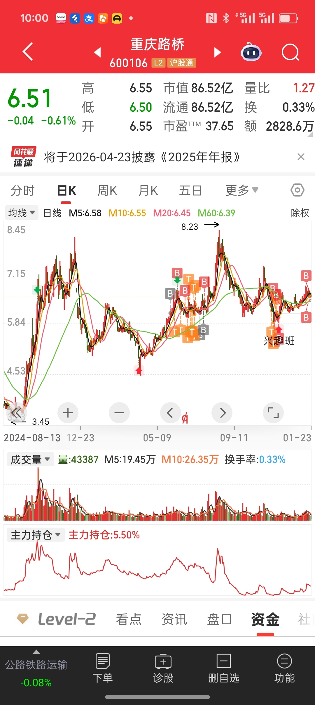 $重庆路桥(SH600106)$ 你继续跌