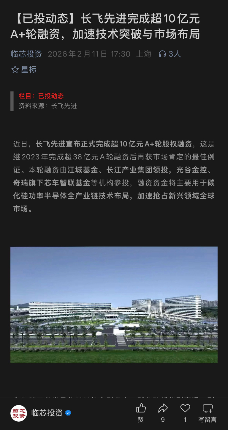 $重庆路桥(SH600106)$ 新一轮A+融资后,长飞先进半导体IPO估计快了