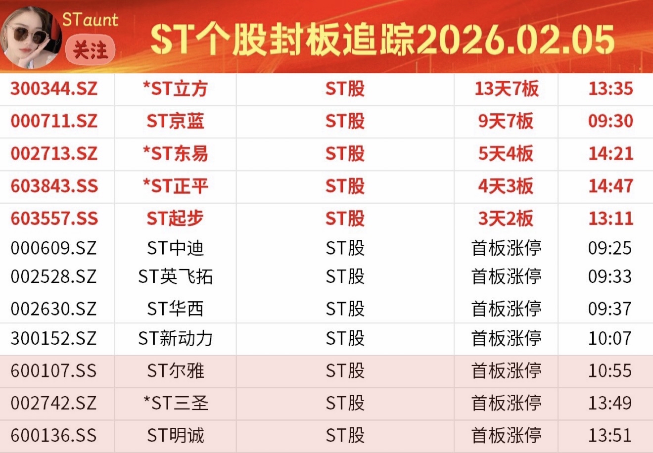 ST个股封板追踪D