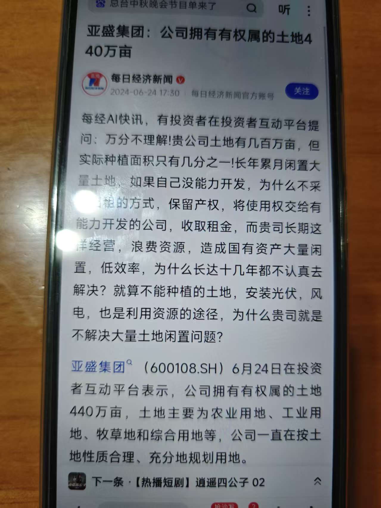 亚盛集团在投资者互动平台表示拥有权属的土地为440万亩截图: