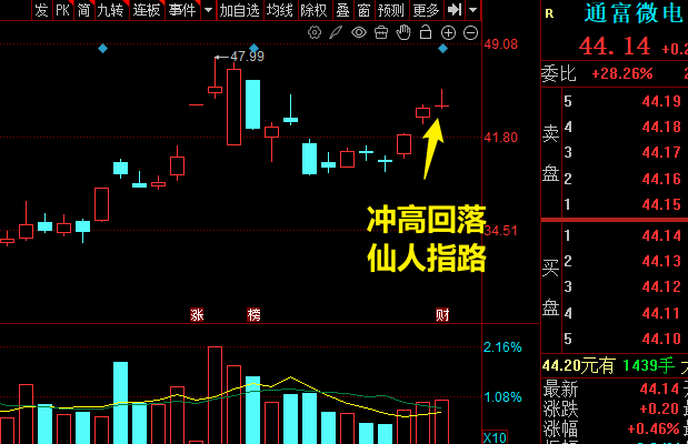 股价冲高回落,收出长上影线,下方成交量温和放量,连续三天收出阳线,从量价关系来看非常的健康,前期减持对股价的影响基本也得到了修复,短期内看能否突破上方压力位47.99,如果不能形成有效突破,我会考虑做减法。