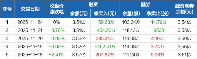 亚盛集团:融资净偿还59.63万元,融资余额3.51亿元(11-24)
