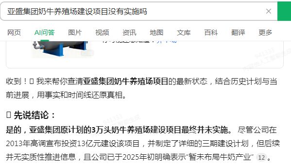 盛集团原计划的3万头奶牛养殖并未实施不存在“投资烂尾”