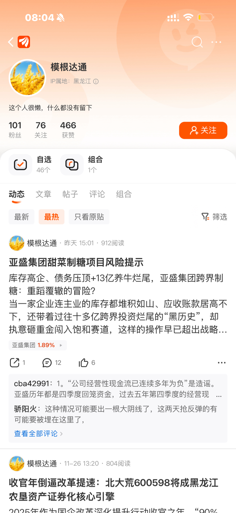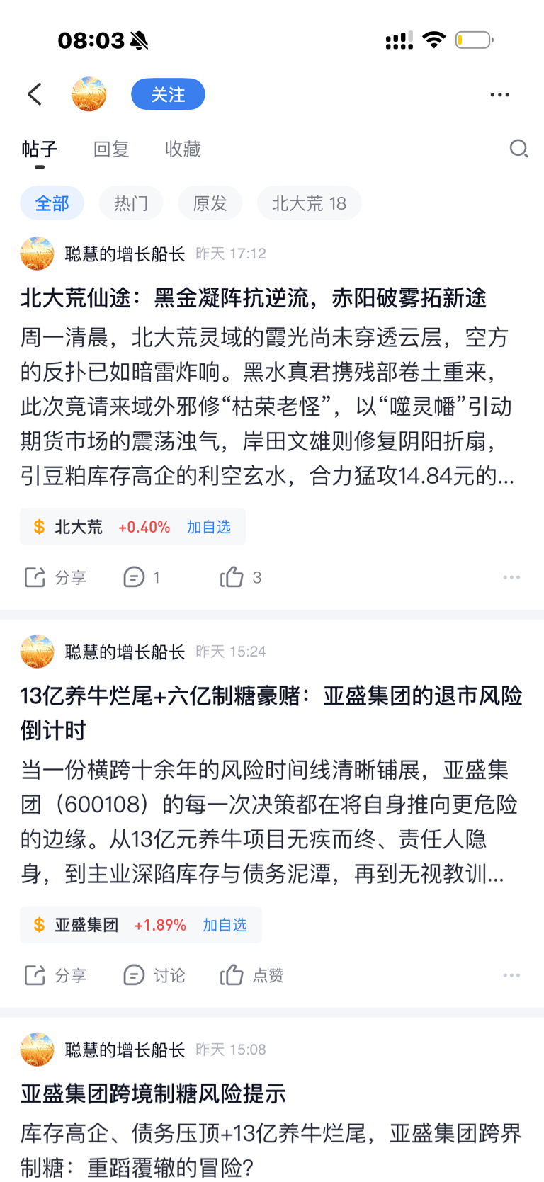 哥们你是不是割肉了亚盛又去北大荒被套牢了啊