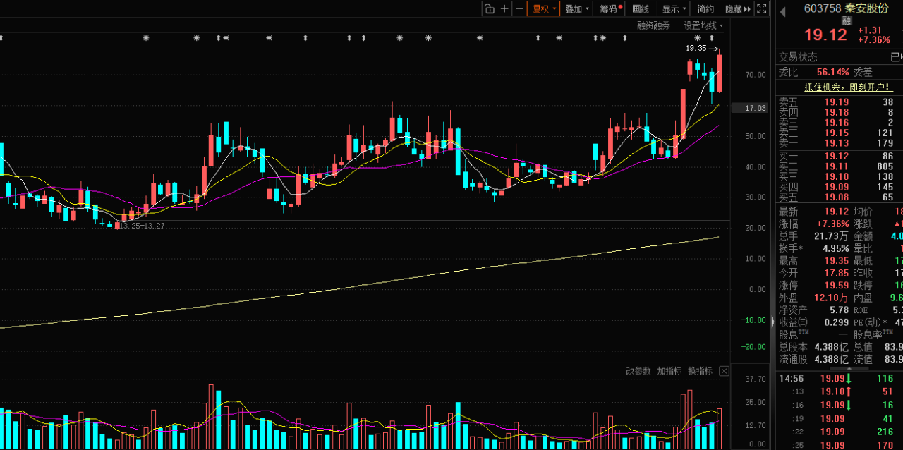 秦安股份603758:拟收购概念,周五些许放量短期新高,但是动能还是比较一般,就看今天能否再度中阳了,短期不能破5均,或者19的位置撑不住也可以先撤,看这个玩法可能会走的比较慢。