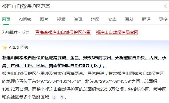 鱼儿红(属于酒泉市)不在祁连山自然保护区范围内