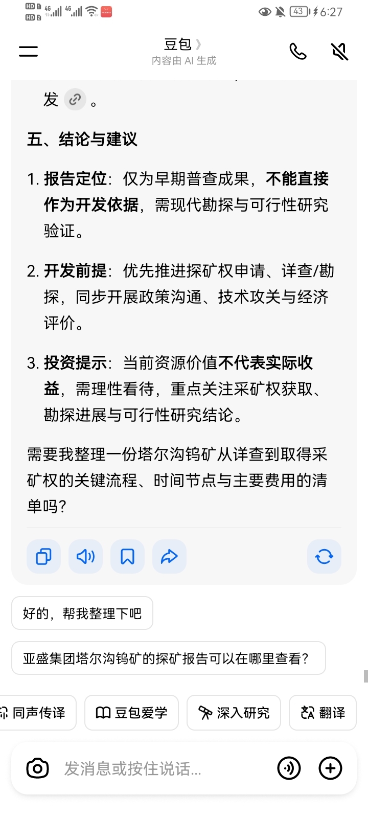 还有兄弟不清楚亚盛土地上的钨矿是什么情况,豆包分析的比较全面了,按探矿报告是30