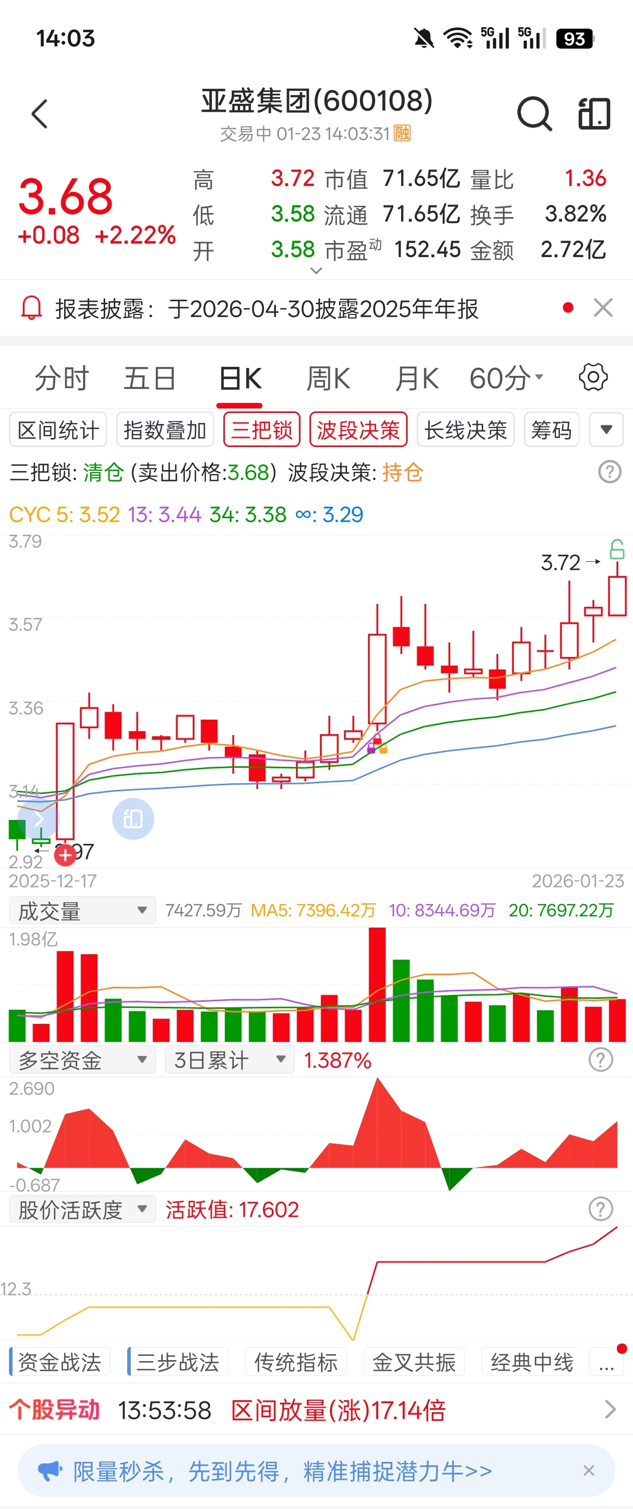 $亚盛集团(SH600108)$ 小绿锁出现了可以卖了,下周再回来低吸做T