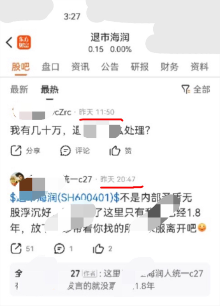 吧长请看下退市海润极速作比情况把一个没有海润的装散的股友yDcZrc作比置顶,并