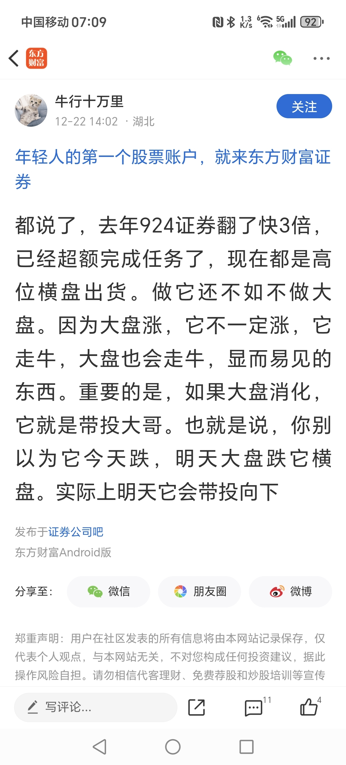 温馨提示: 1.根据《证券法》规定,禁止编造、传播虚假信息或者误导性信息,扰乱证券市场;2.用户在本社区发表的所有资料、言论等仅代表个人观点,与本网站立场无关,不对您构成任何投资建议。用户应基于自己的独立判断,自行决定证券投资并承担相应风险。《东方财富社区管理规定》