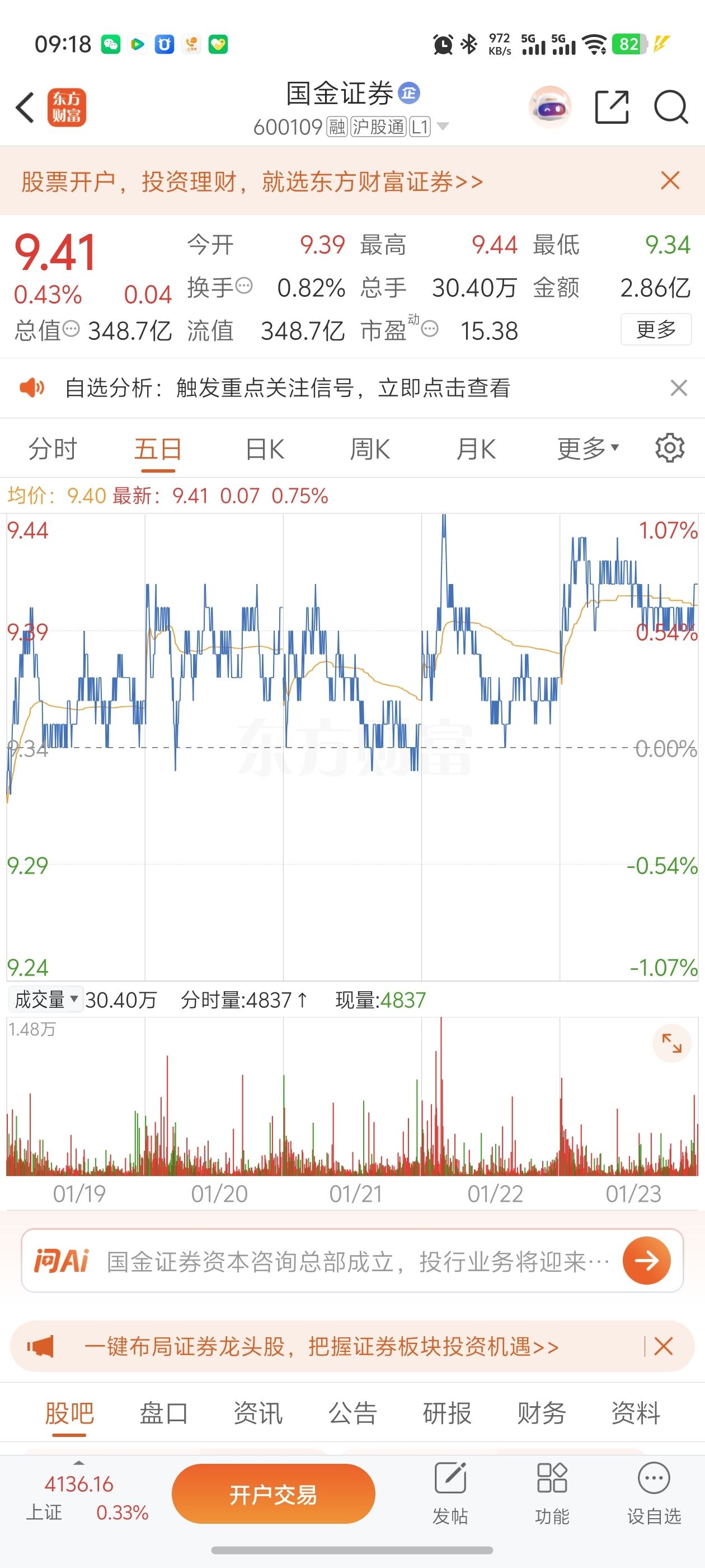$国金证券(SH600109)$ 5天波动一个点都没法做T