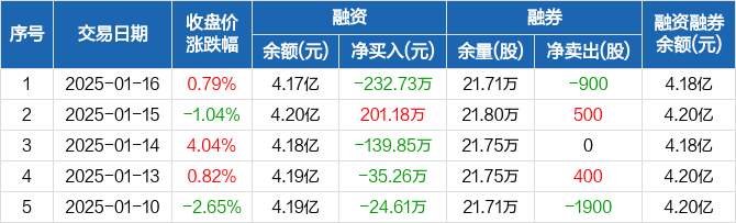 诺德股份:融资净偿还232.73万元,融资余额4.17亿元(01-16)