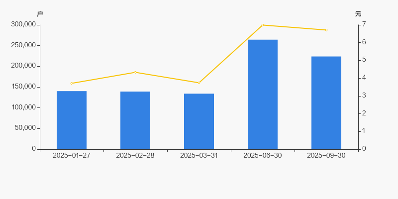2025年1月27日至今,公司股东户数显著大幅增长,区间涨幅达59.63%。2025年1月27日至2025年9月30日区间股价上涨80.86%。
