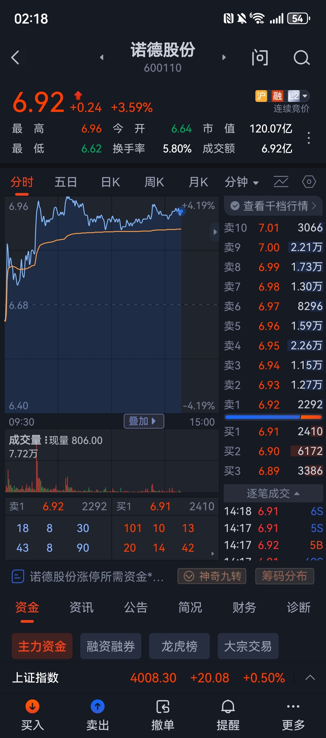 $诺德股份(SH600110)$ 这么大的卖单、宰仓出局