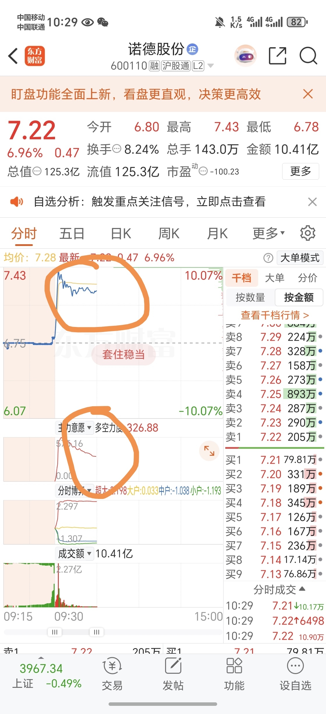$诺德股份(SH600110)$ 主力6.75一笔大单拉高,主力在7.20以上出货,有没有可能主力低买高卖,有没有可能把散户套山顶,涨停板卖了,我等6.75以下再买回来