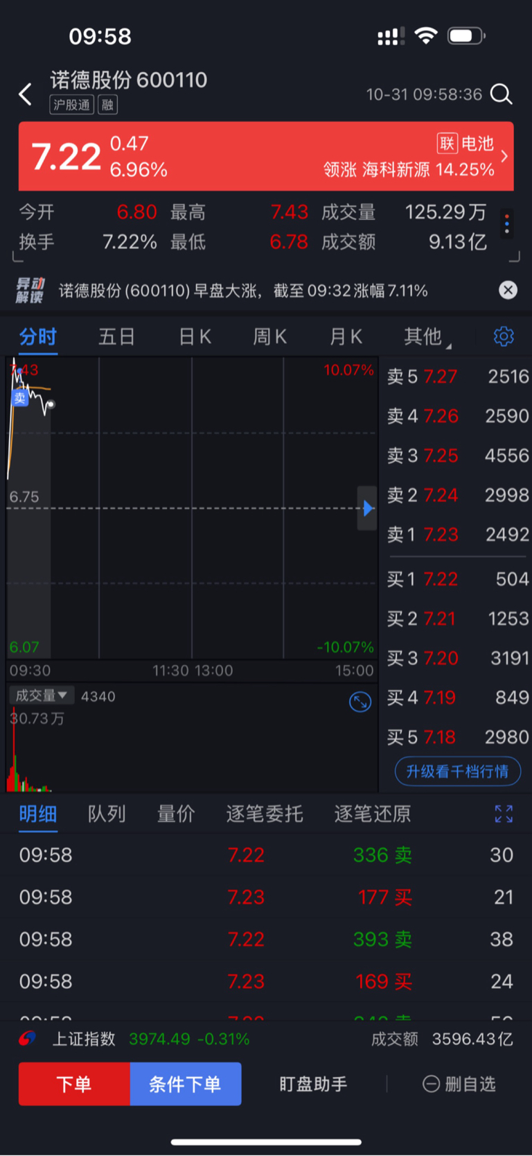 $诺德股份(SH600110)$  起晚了不然挂涨停跑了,还好睡醒打开立马就跑