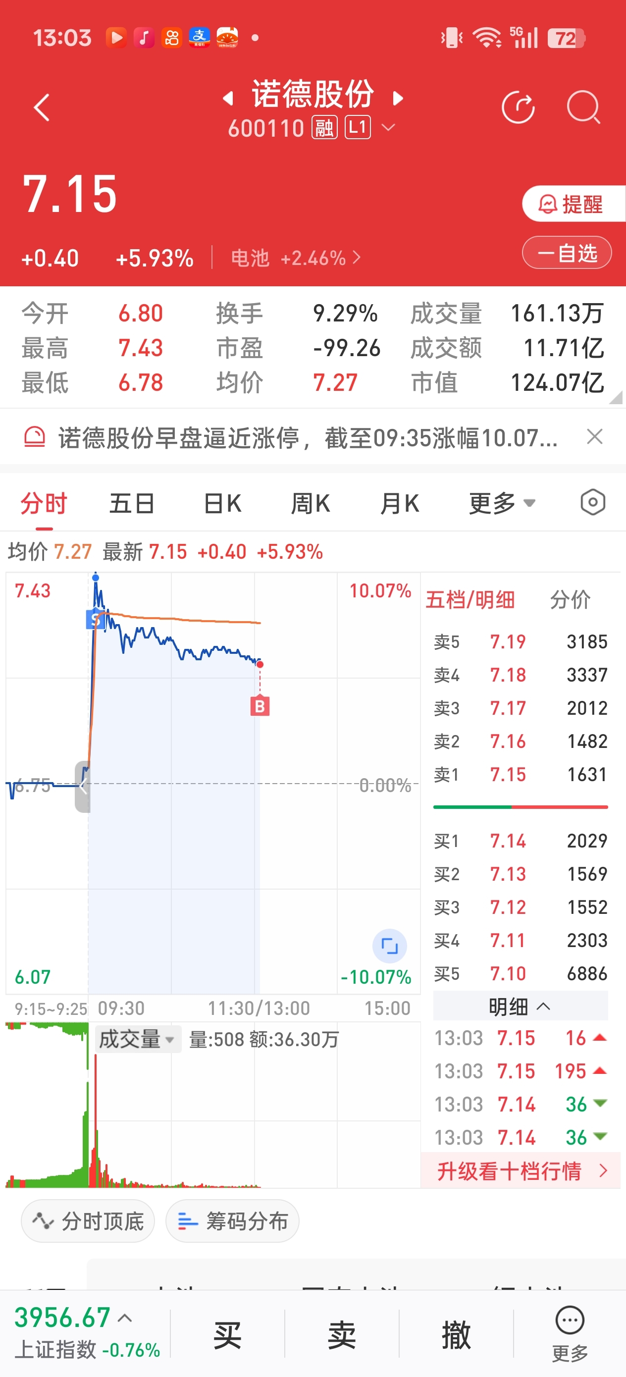 $诺德股份(SH600110)$ 满仓卖了,然后进去3成仓。看周一表演