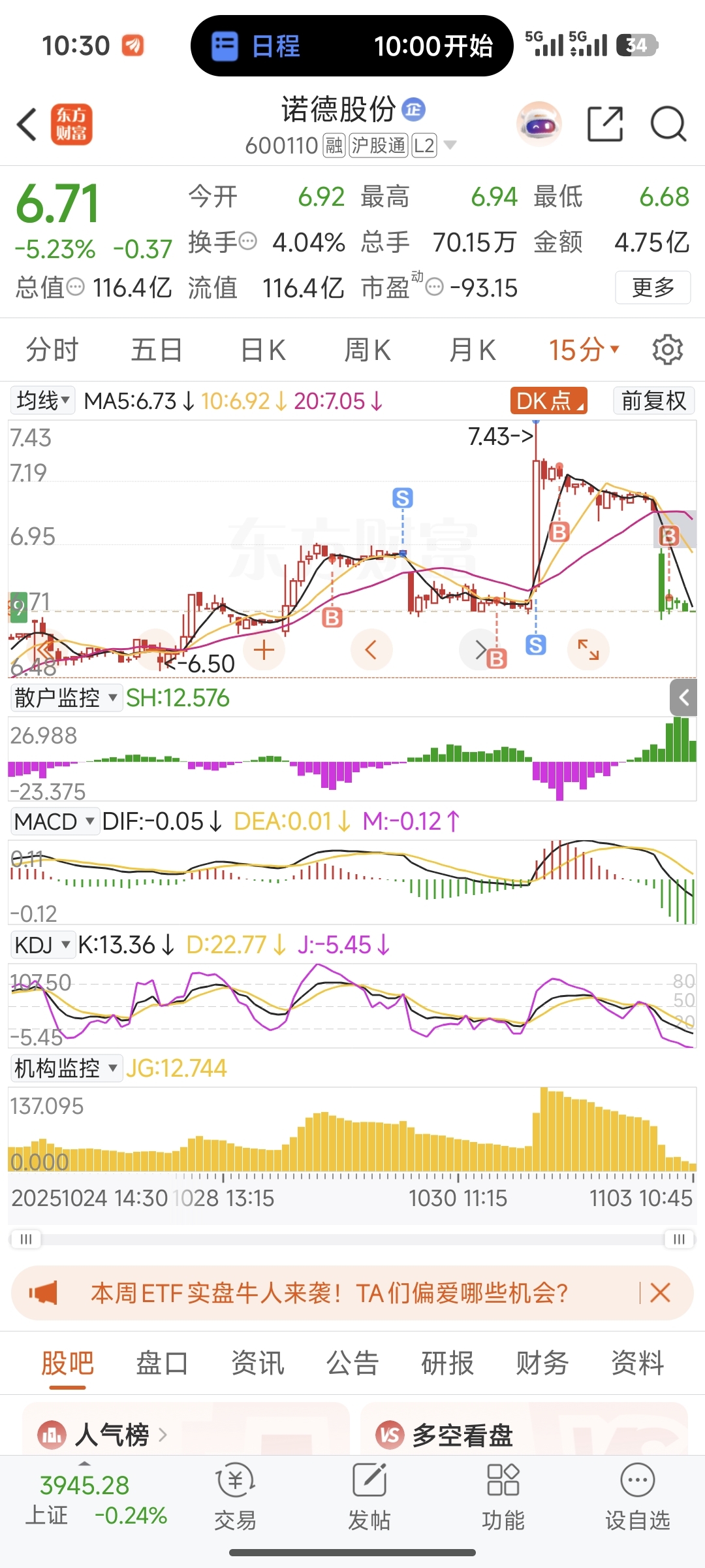 $诺德股份(SH600110)$ 主力疯狂出货,散户拼命买。真是不该买的。。。