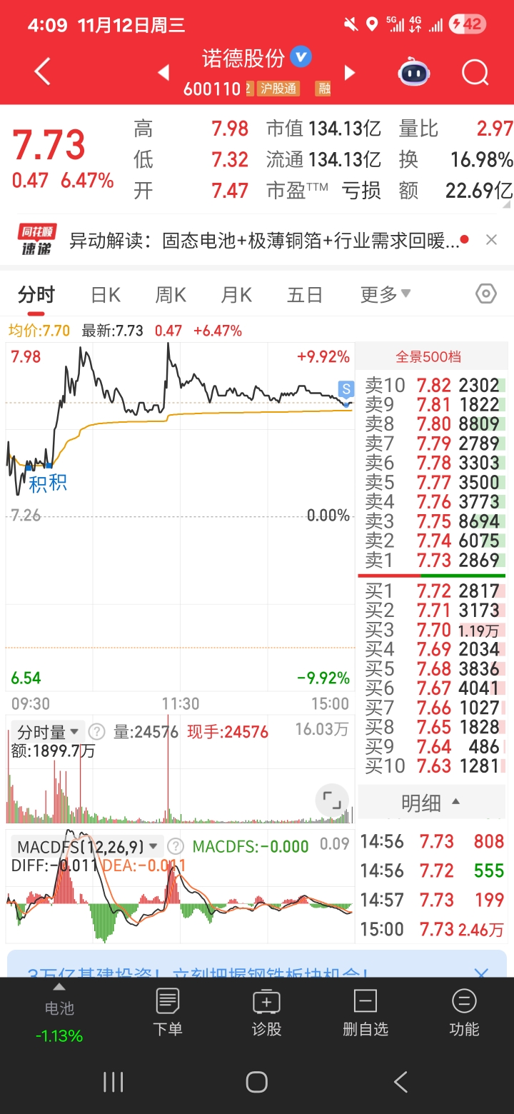 $诺德股份(SH600110)$ 一般我一卖就要起飞了