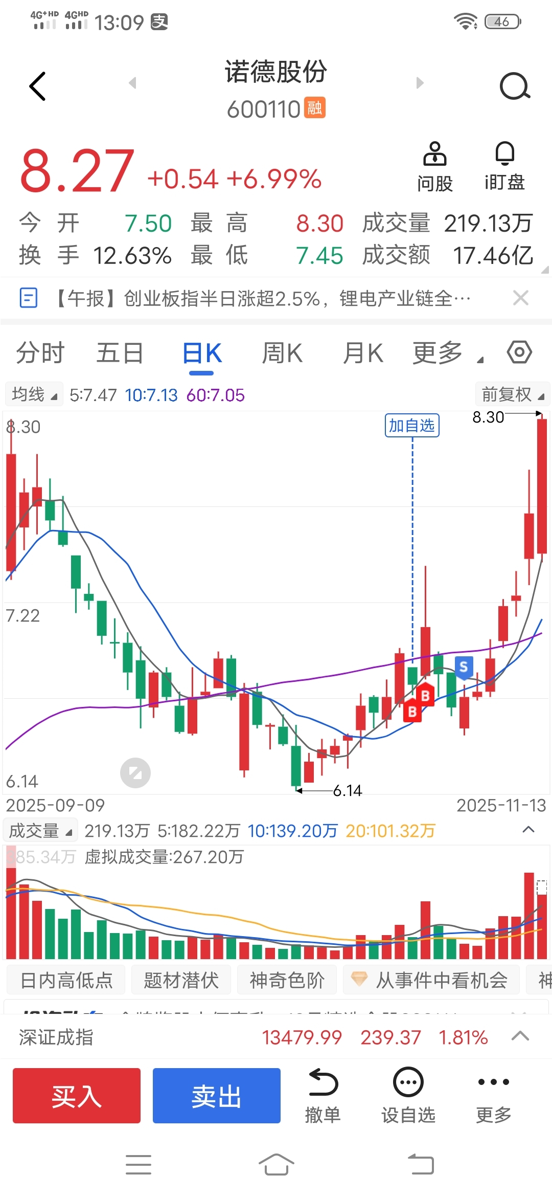 $诺德股份(SH600110)$ 我就是个韭菜,唉,不想说了