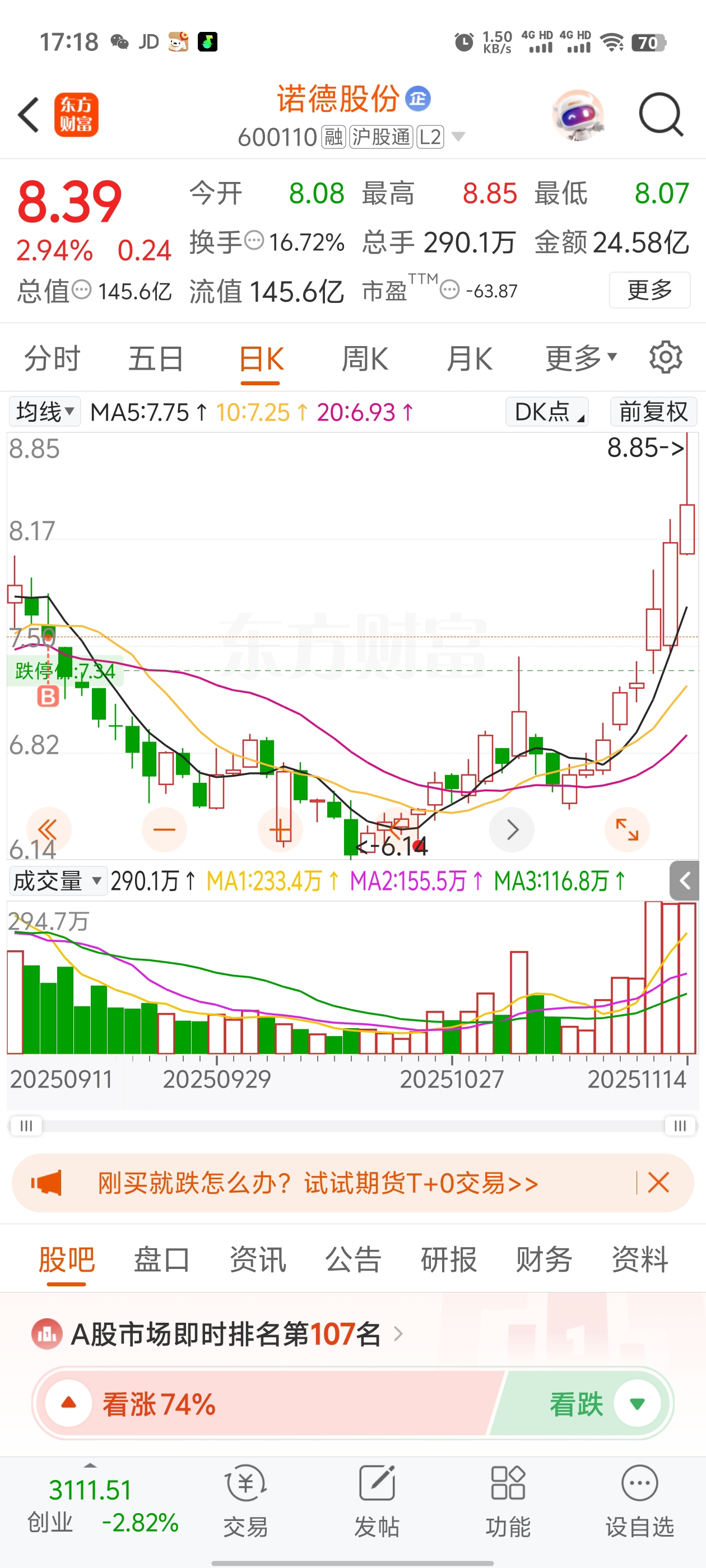 $诺德股份(SH600110)$ 要有耐心,别被他人左右