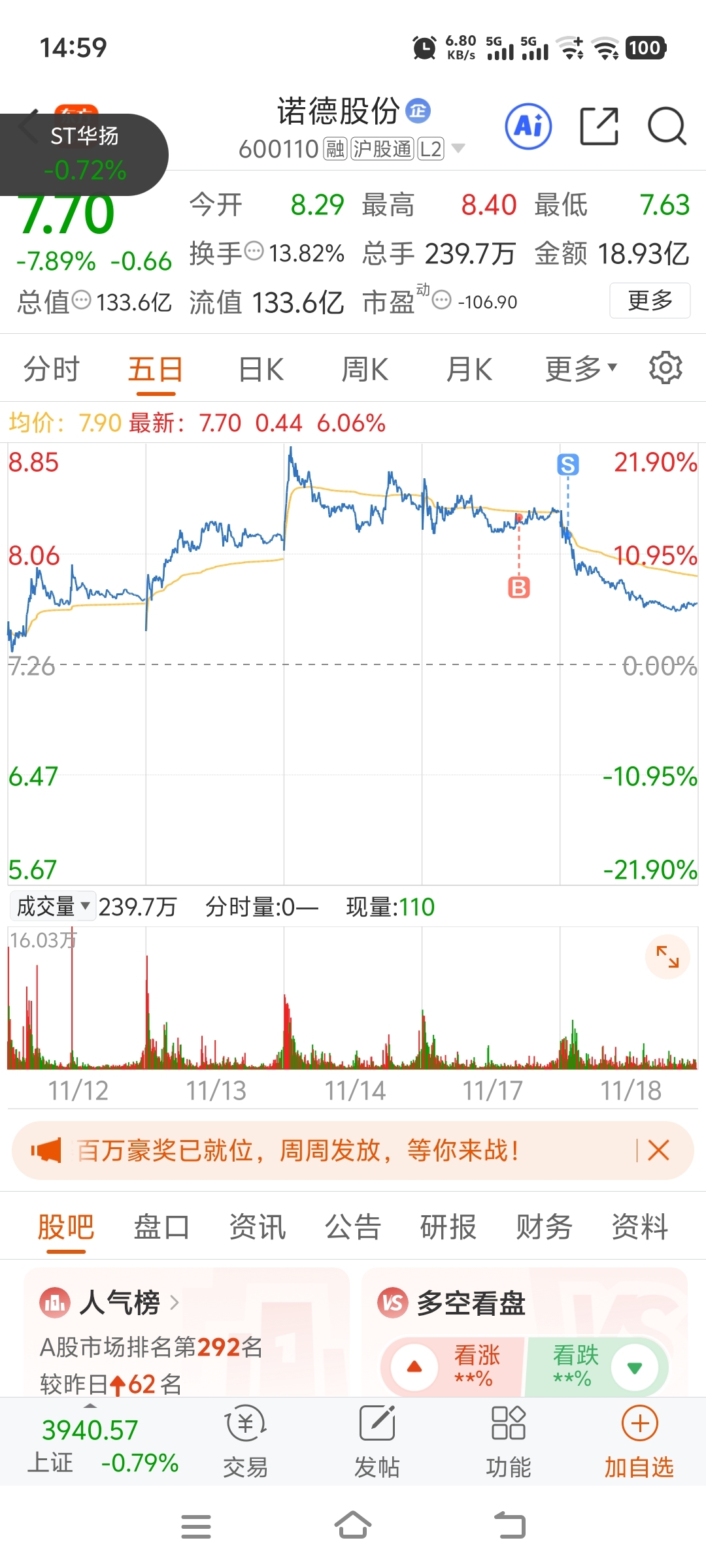$诺德股份(SH600110)$ 从21年开始就不敢碰新能源,昨天忍不住诱惑买了,依旧是这副德行