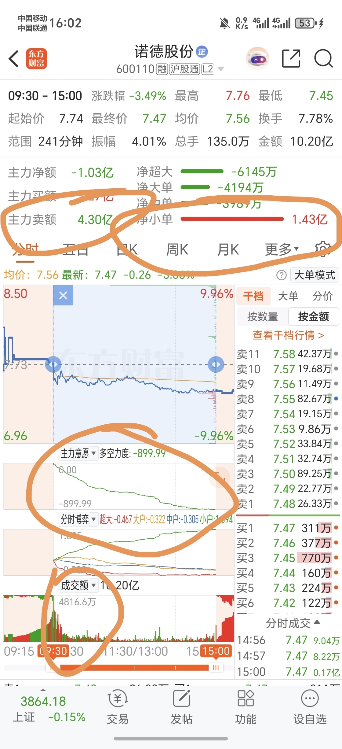 $诺德股份(SH600110)$ 小单就是散户买入1.4亿,主力跑了4个多亿