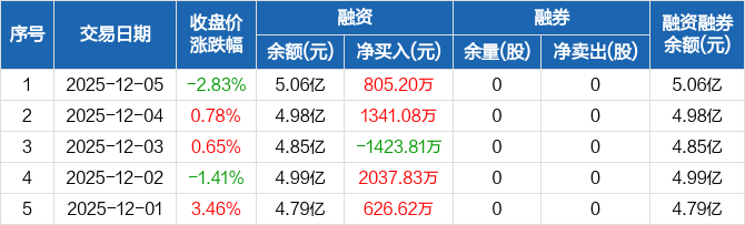 诺德股份:融资净买入805.2万元,融资余额5.06亿元(12-05)