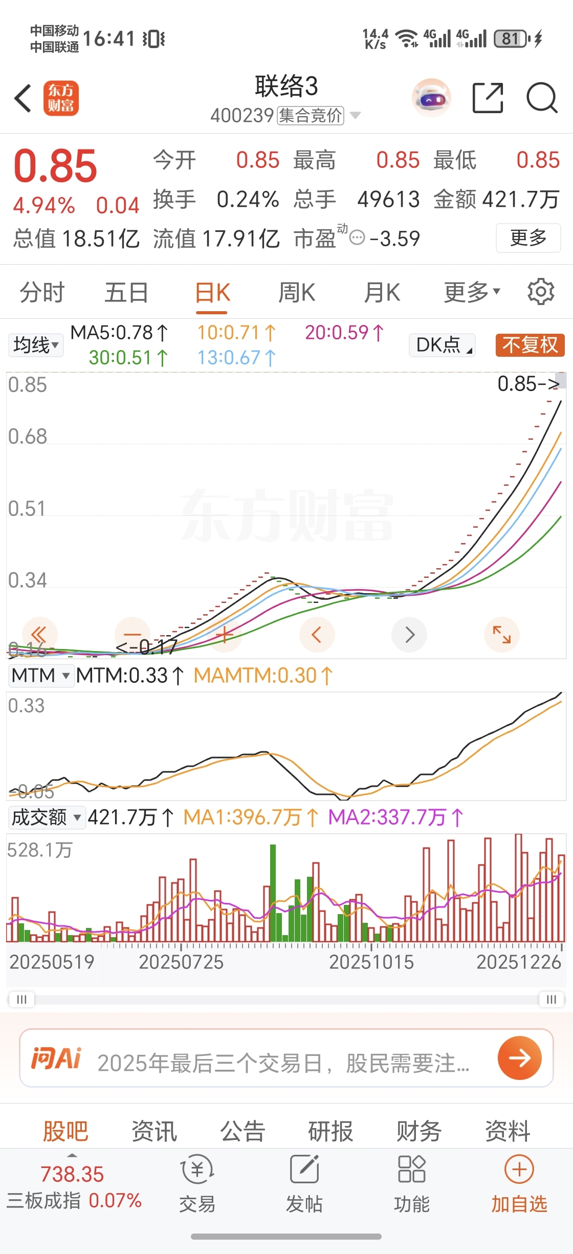 温馨提示: 1.根据《证券法》规定,禁止编造、传播虚假信息或者误导性信息,扰乱证券市场;2.用户在本社区发表的所有资料、言论等仅代表个人观点,与本网站立场无关,不对您构成任何投资建议。用户应基于自己的独立判断,自行决定证券投资并承担相应风险。《东方财富社区管理规定》